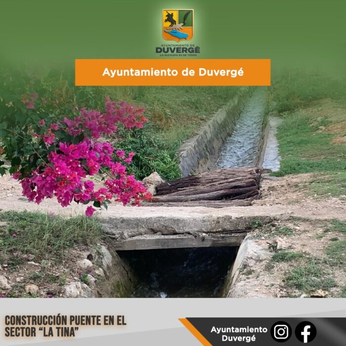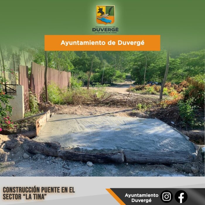El Ayuntamiento de Duvergé, en coordinación con la Junta de Vecinos del sector La Tina, construyó un puente, una obra largamente esperada por los residentes de la comunidad.