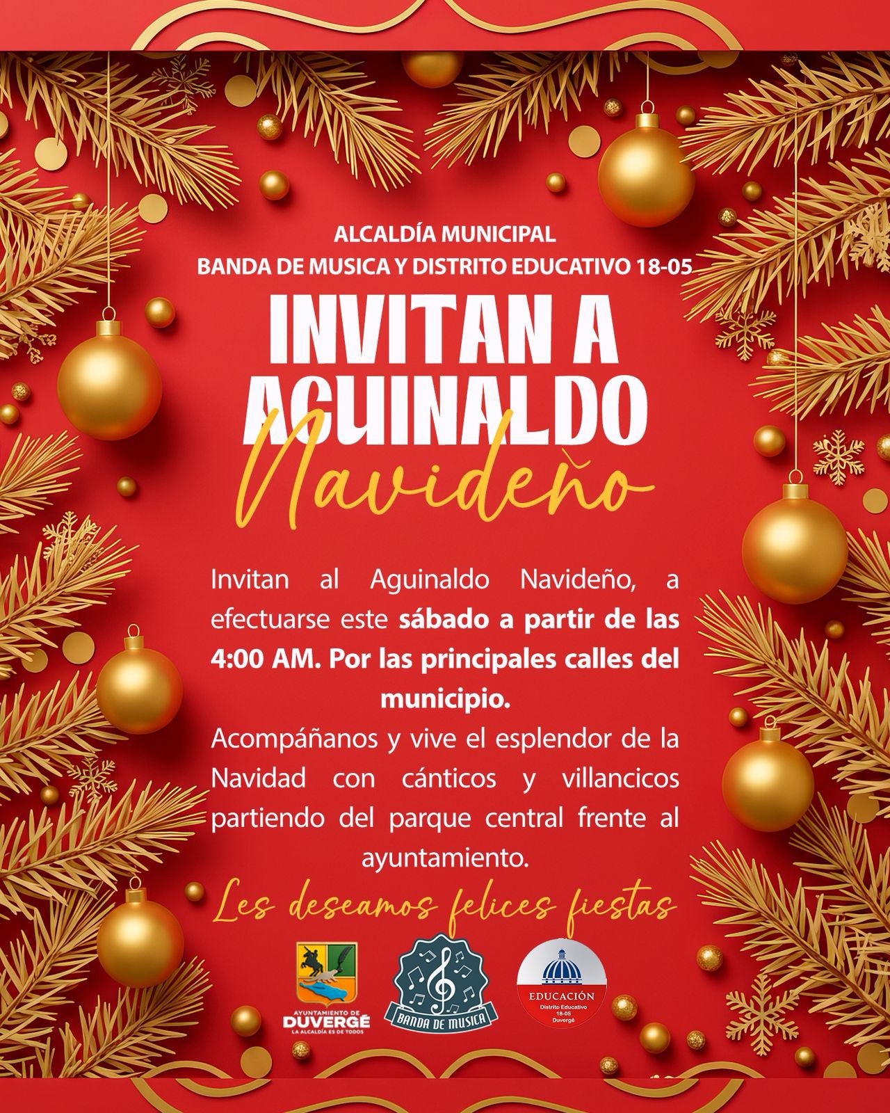 Éste sábado 13 de Diciembre, a partir de las 4:00 a. m., por las principales calles del municipio de Duvergé.