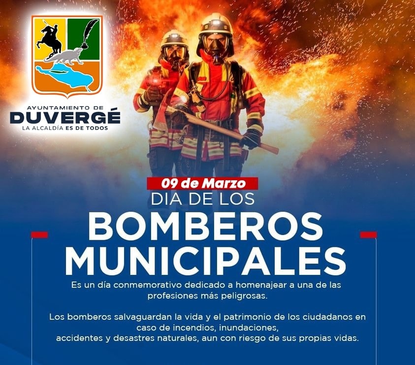 Hoy, 9 de marzo, en conmemoración del Día de los Bomberos, la Alcaldía del municipio de Duvergé, en la provincia Independencia, celebra junto a esos valientes héroes este día tan especial. Reconocemos su arduo trabajo y dedicación, y les agradecemos por su invaluable labor en nuestra comunidad.